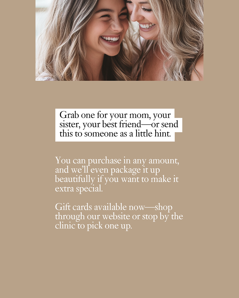 At Modern Medical Spa, we’re making gifting simple with beautifully versatile gift cards that can be used toward any of our aesthetic and wellness services. Whether she’s new to med spa treatments or already a regular, a gift card allows her to choose exactly what she needs most.